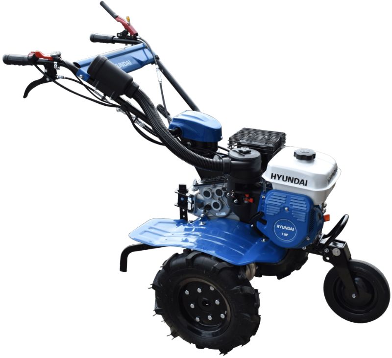 NUEVA Motoazada con motor a gasolina de 7 hp marca Hyundai. 3 Velocidades (2 + 1 reversa). Maneral ajustable. Transmisión cadena. Ruedas agrícolas 400 x 8. Embrague de doble carga. Manillar ajustable en altura y lateral. Grifo de purga en carburador. Tapa de arranque a prueba de agua. Sistema triple de filtrado. Transmisión de cadena en baño de aceite. Rueda transporte frontal.