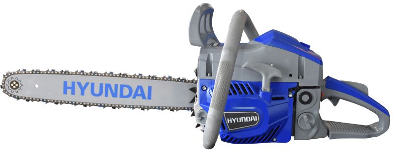 Motosierra semiprofesional con motor de gasolina de 2 tiempos marca HYUNDAI. Ideales para poda y derrame de árboles, jardines y fincas.
